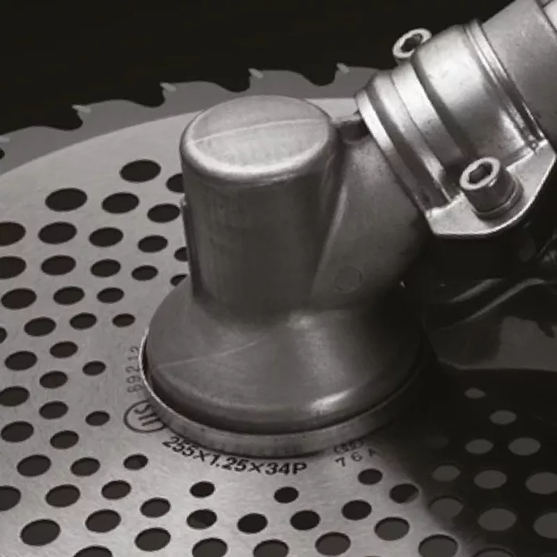 Коса оснащена профессиональным диском Katana Blade диаметром 25,5 см, изготовленным из прочной инструментальной стали с победитовыми напайками. Благодаря фирменной технологии заточки пластин с четырьмя режущими кромками инструмент легко справится с тонкими ветками деревьев. В комплекте также идет триммерная насадка с леской диаметром 2,4 мм. В данной модели допускается использование лески 3,5 мм, что повышает производительность косы и облегчает работу возле заборов, бордюров и под кустами.