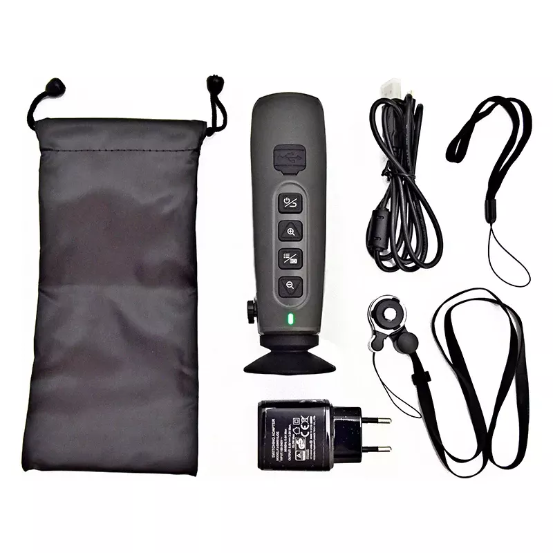 Устройство питается от Li-Ion аккумулятора. Полного заряда хватает до 4 ч непрерывного использования тепловизионного монокуляра.