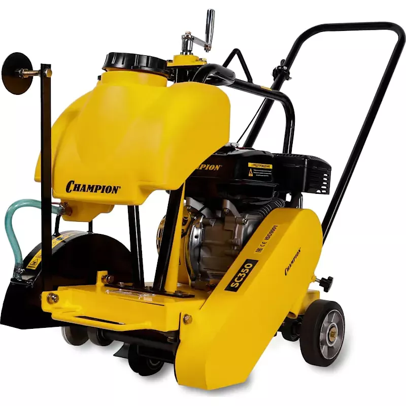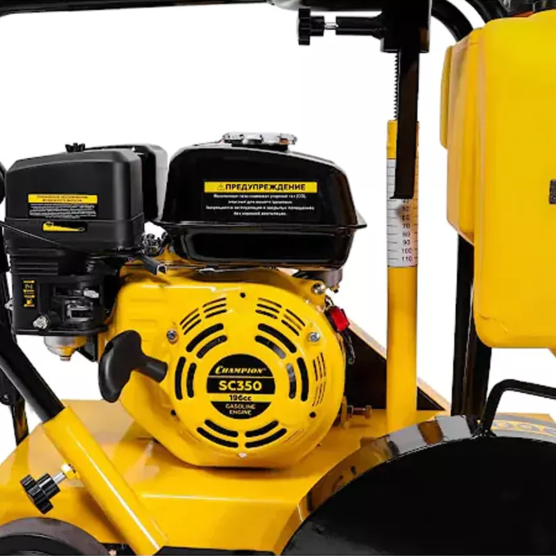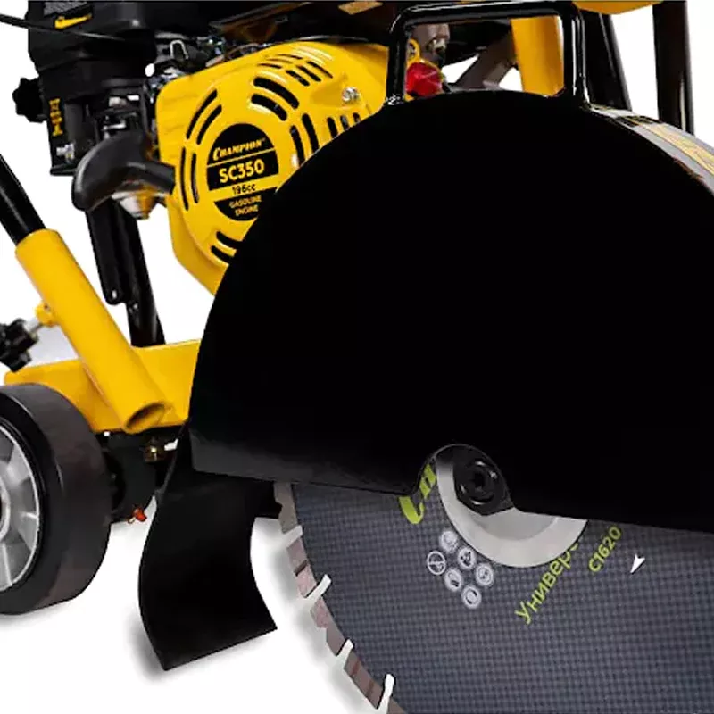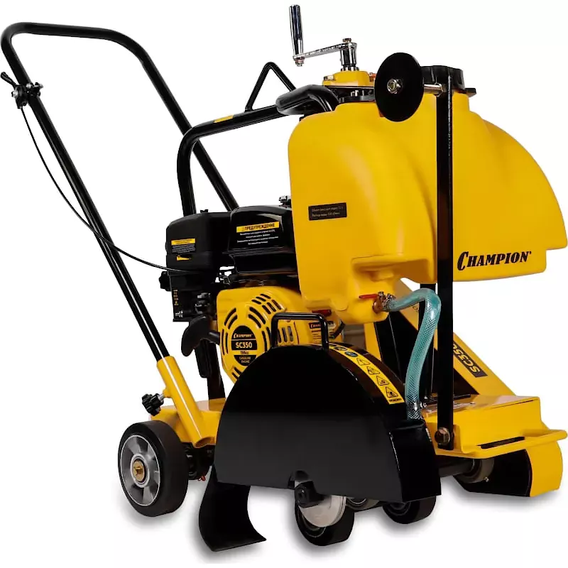 Швонарезчик Champion SC350 - надежный инструмент с бензиновым четырехтактным двигателем. Эта мощная машина позволит вам достигать глубины реза до 110 мм при использовании дисков диаметром до 350 мм. Благодаря встроенной системе подачи воды, количество бетонной пыли и взеси при работе уменьшается, а диск остается охлажденным, что продлевает его срок службы.