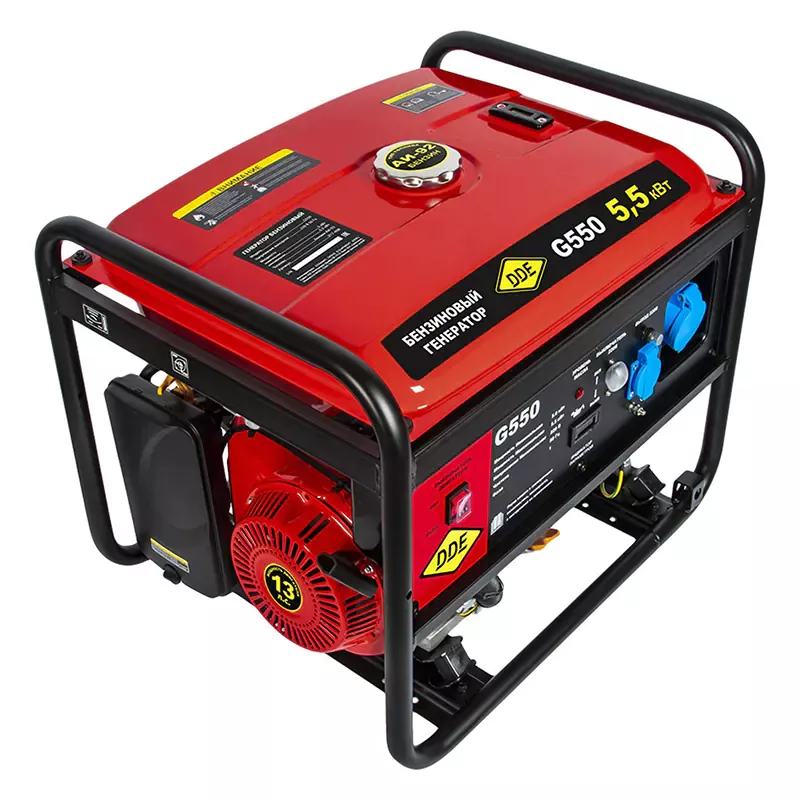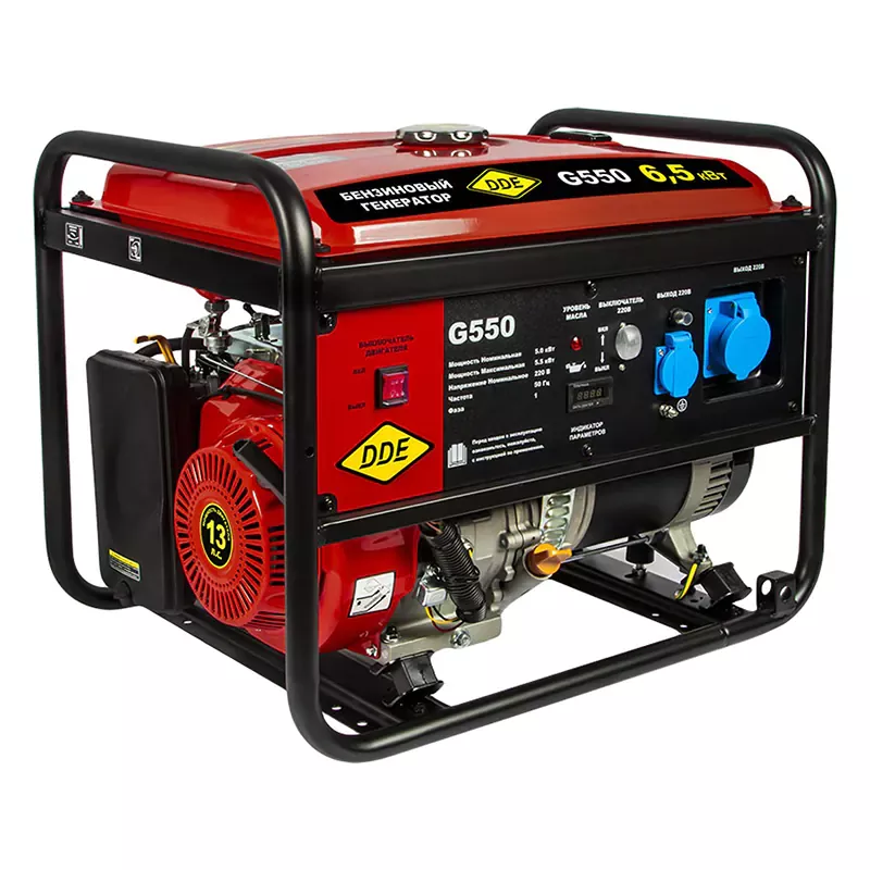 Бензиновый генератор DDE G550 – полупрофессиональная электростанция для подключения техники и инструментов в случае аварии или недоступности электросетей. Устройство обеспечивает питание нескольких приборов общей мощностью до 5,5 кВт, оборудовано силовой розеткой 32 А и выходом на 12 В.
