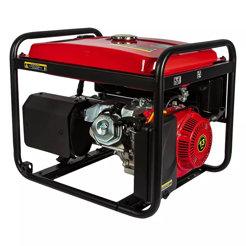 Бензиновый генератор используется для снабжения электричеством загородных домов, дач, гаражей, ферм, удаленных от центральных электросетей. Аппарат, оснащенный двигателем мощностью 13 л.с. и топливным баком на 25 л, обеспечивает до 9,5 ч. бесперебойной работы бытовой техники, инструментов и осветительных приборов. Запуск осуществляет ручным стартером. Для подключения потребителей есть розетка 220 В и порт для зарядки гаджетов 12 В.