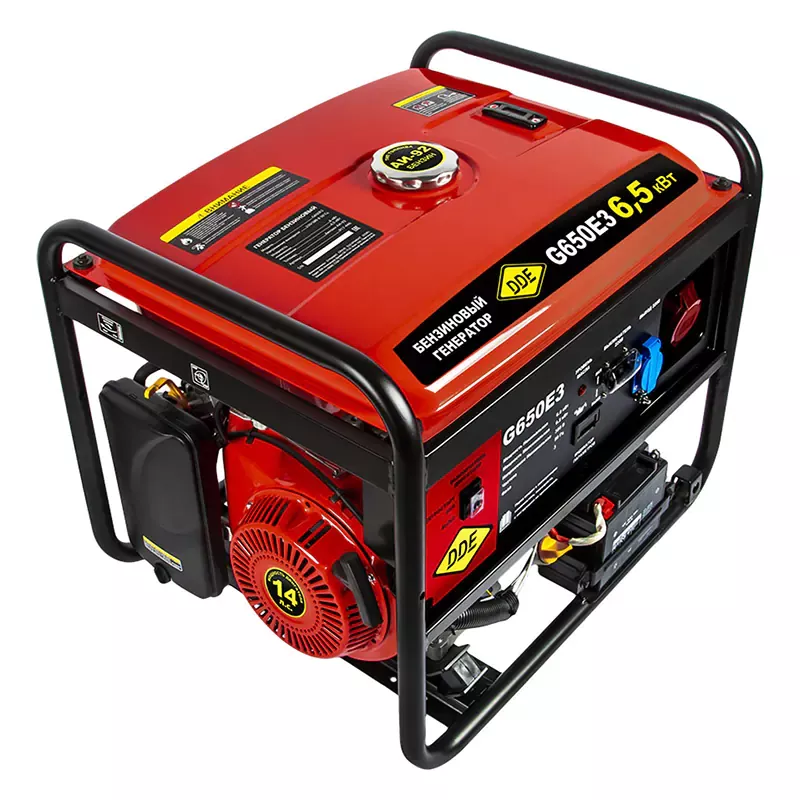 Бензиновый генератор DDE G650E3 с максимальной мощностью 6,5 кВт предназначен для питания однофазных потребителей или трехфазной техники. Предусмотрен электростартер, который позволяет запускать двигатель одним нажатием кнопки.