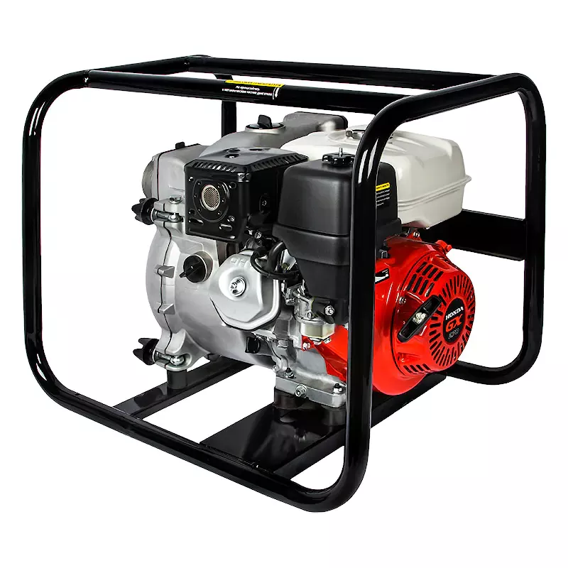 Грязевая мотопомпа оборудована бензиновым 4-тактным двигателем японской компании Honda GX270. Его объем составляет 270 см3. Такой мотор выдерживает высокие нагрузки без потери производительности. Это позволяет применять мотопомпу не только на дачном участке, но и в профессиональной сфере деятельности. Например, бензиновая помпа подойдет коммунальным службам, строителям или нефтяникам.