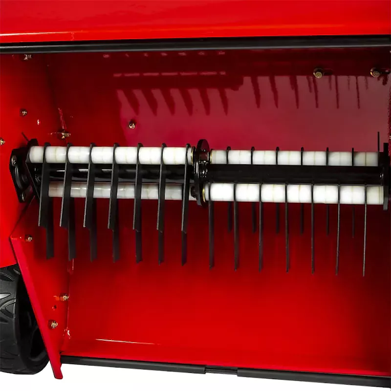 Глубина скарификации настраивается вручную при помощи рычага от +12 до -12 мм. Большая ширина обработки позволяет быстро и эффективно приводить в порядок участки площадью до 1000 м2. Предварительно с территории рекомендуется убрать камни, палки и посторонние предметы.