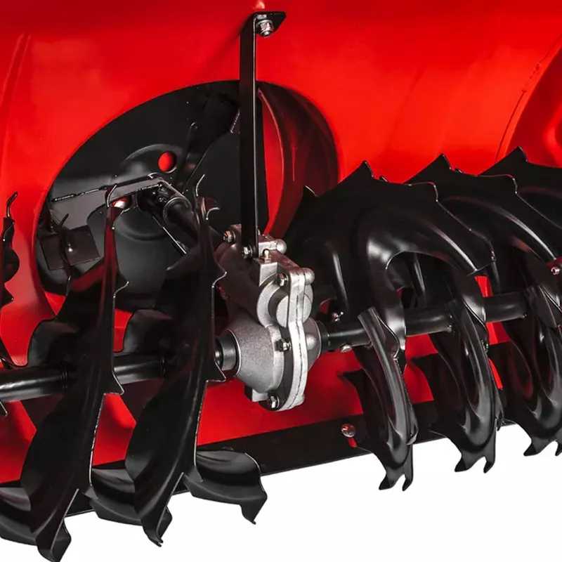 Яркая фара обеспечивает не только удобство работы в условиях плохой освещенности, но и безопасность во время уборки вблизи проезжей части. Закрепленная на корпусе лопатка помогает очищать шнек и желоб от засоров и наледи.