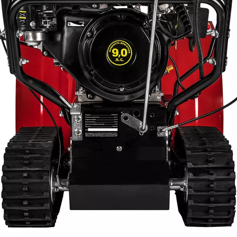 Четырехтактный двигатель рассчитан на эксплуатацию при минусовых температурах. Наличие праймера для подкачки топлива в карбюратор, облегчает запуск снегоуборщика DDE ST9072ET с помощью ручного стартера. Если поблизости есть розетка, то машину можно быстро завести от сети благодаря наличию электростартера.