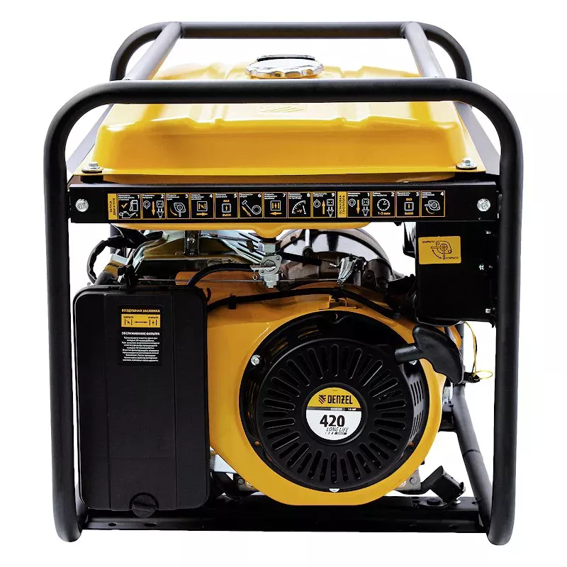 Все розетки бензогенератора Denzel GE-6900 оснащены предохранителями, которые защищают от короткого замыкания. Помимо этого, при резком скачке напряжения срабатывает автоматическое отключение. Это предотвращает поломку самого генератора, а также подключенных к нему потребителей.