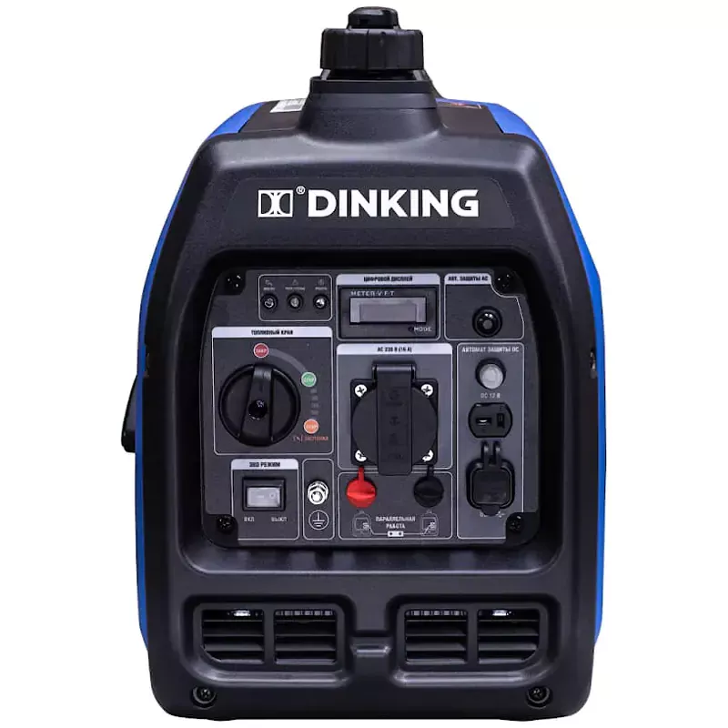 На передней панели генератора Dinking DK2500i расположены индикаторы работы, перегрузки и низкого уровня масла. При низком уровне масла двигатель автоматически выключится до заправки картера. Для безопасности в случае перегрева, превышения тока или неисправности подключенного прибора срабатывает предохранитель, выработка электроэнергии прекращается.
