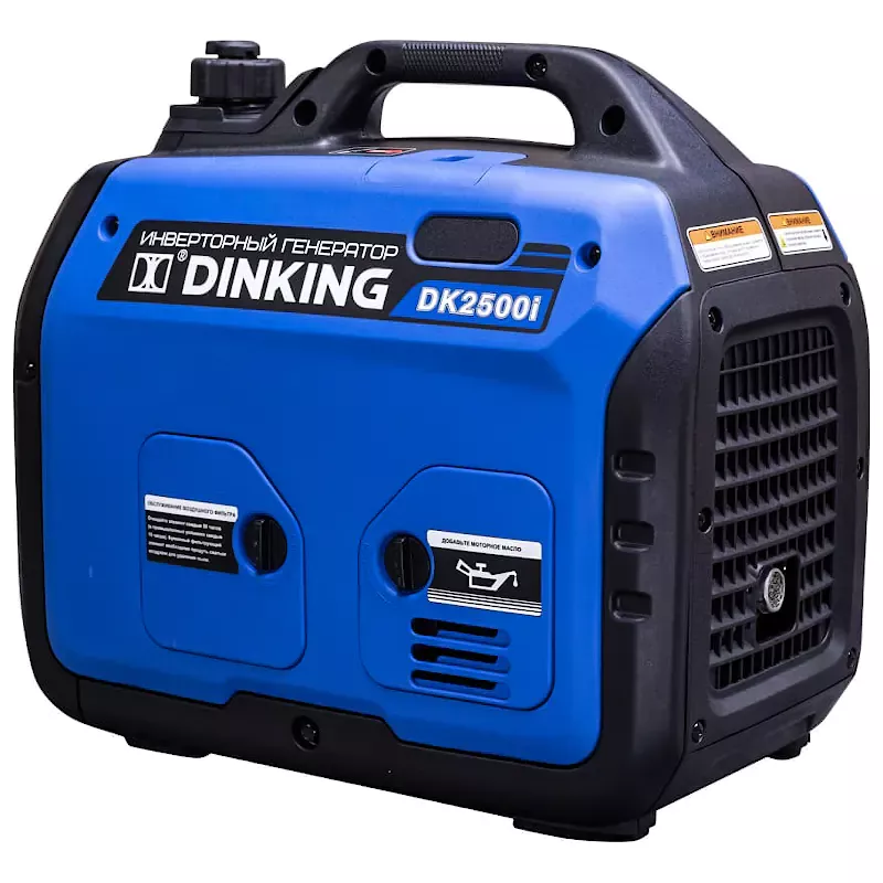 Инверторный генератор Dinking DK2500i в шумозащитном кожухе с ручкой для переноски весит всего 18 кг, удобен для перевозки в багажнике автомобиля, поездок на дачу, рыбалку или пикник. Мини электростанция обеспечивает автономное питание техники, инструментов и гаджетов с максимальной общей потребляемой мощностью 2,5 кВт. Генератор работает от четырехтактного бензинового двигателя с воздушным охлаждением и ручным стартером.