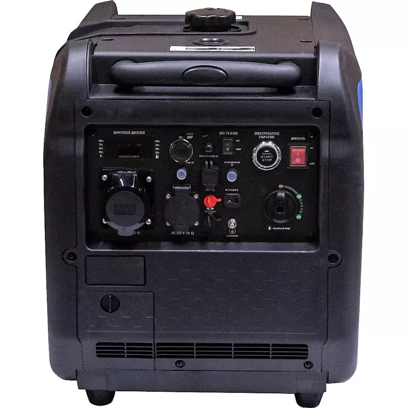 Данный генератор оснащен цифровым дисплеем который выводит важную информацию о работе генератора (напряжения, частота, моточасы). Благодаря "чистой" выдаваемой мощности на выходе им легко можно запитать зарядные устройства чувствительной к напряжению техники (смартфоны, планшеты, ноутбуки). Генератор способен поддерживать работу обогревательных и холодильных устройств, телевизоров, освещения.
