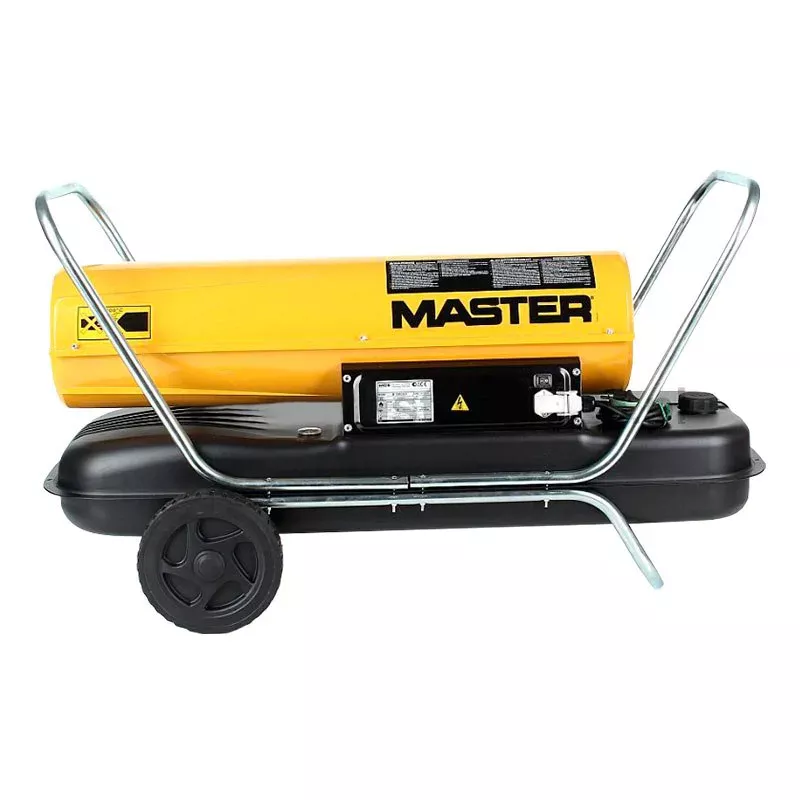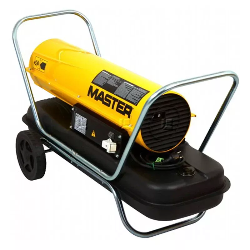 Дизельная тепловая пушка Master B 150 CED мощностью 44 кВт образует воздушный поток объемом 900 м3 за один час, оснащена тележкой с транспортировочными колесами для простого перемещения по рабочему помещению.