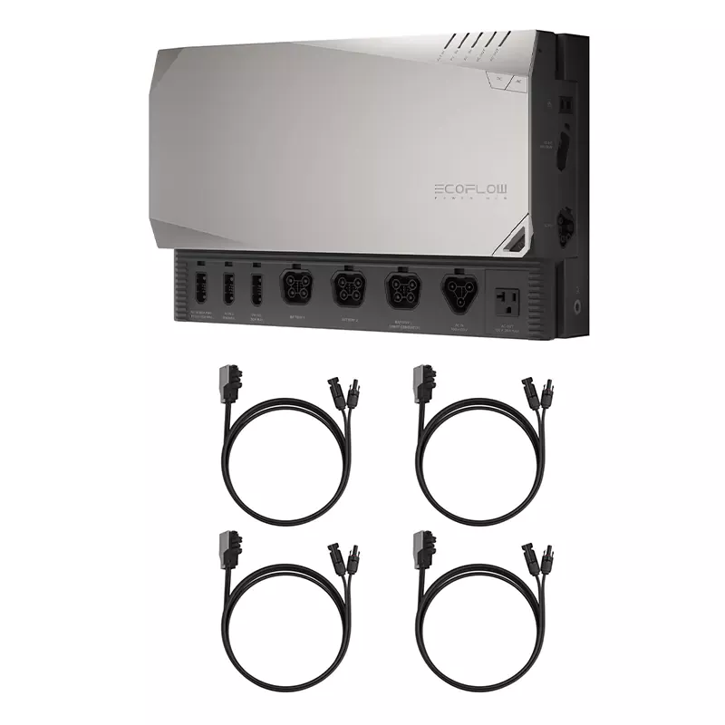Комплект EcoFlow Power Kit включает 2 основных блока: центральный концентратор всех входов и выходов EcoFlow Power Hub и батареи LFP EcoFlow на 2 кВт·ч или 5 кВт·ч. Power Hub включает 2 солнечных контроллера заряда MPPT, зарядное устройство с MPPT, понижающий преобразователь постоянного тока и инверторное зарядное устройство.