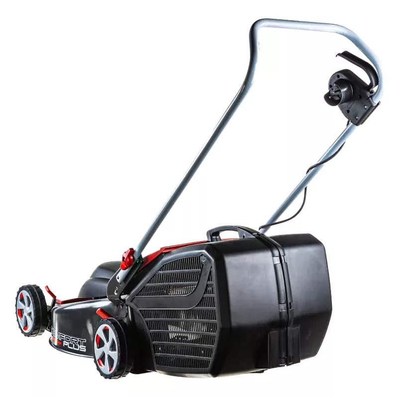 Электрическая газонокосилка позволяет ухаживать за газоном без вреда для экологии. Модель оснащена надежным бесщеточным двигателем и практически не нуждается в обслуживании. При работе такая техника не выделяет неприятных выхлопов, мало шумит, не загрязняет почву горюче-смазочными материалами. Пользоваться газонокосилкой очень просто — для запуска достаточно подсоединить вилку к электросети с напряжением 220 В, нажать кнопку предохранителя и рычаг привода ножа.