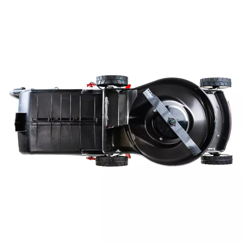 Ширина кошения составляет 46 см, что позволяет быстро обработать участок. Регулировка высоты скашивания осуществляется путем перестановки колес в один из трех пазов. Скошенную траву можно оставить на участке или собрать в контейнер. Емкость травосборника составляет 60 л, поэтому часто останавливаться для его опустошения не придется.