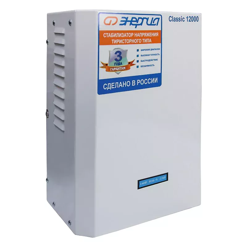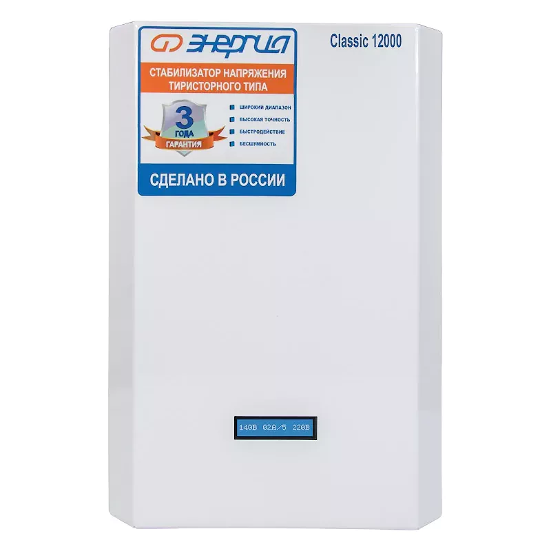 Все это позволяет отнести тиристорные стабилизаторы Энергия Classic к электрооборудованию премиум класса по качеству и надежности.
