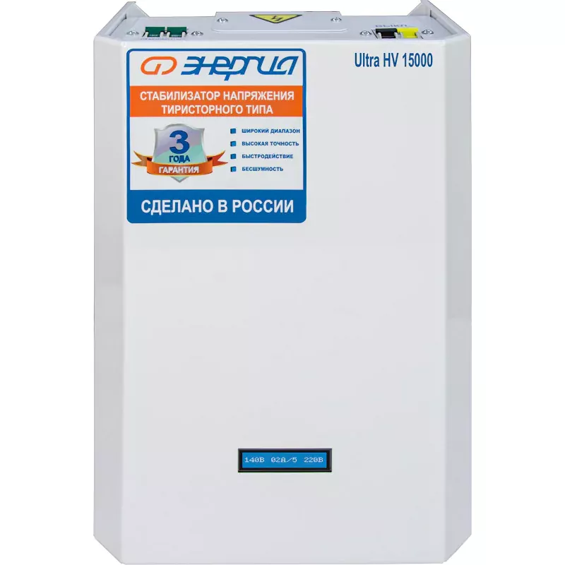 Тиристорный стабилизатор напряжения Энергия Ultra HV предназначен для выравнивания напряжения в диапазоне от 176 до 286 В. Отличительная черта модели - стабилизация повышенных напряжений, рабочий диапазон пропорционально сдвинут в сторону высоких входных напряжений, обеспечивает нормализацию до 220 В. Для непрерывного обеспечения качественным и стабильным электропитанием различных потребителей в условиях больших по значению и длительности отклонений напряжения в электрической сети от номинального, защиты приборов-потребителей от высокочастотных и высоковольтных импульсов.