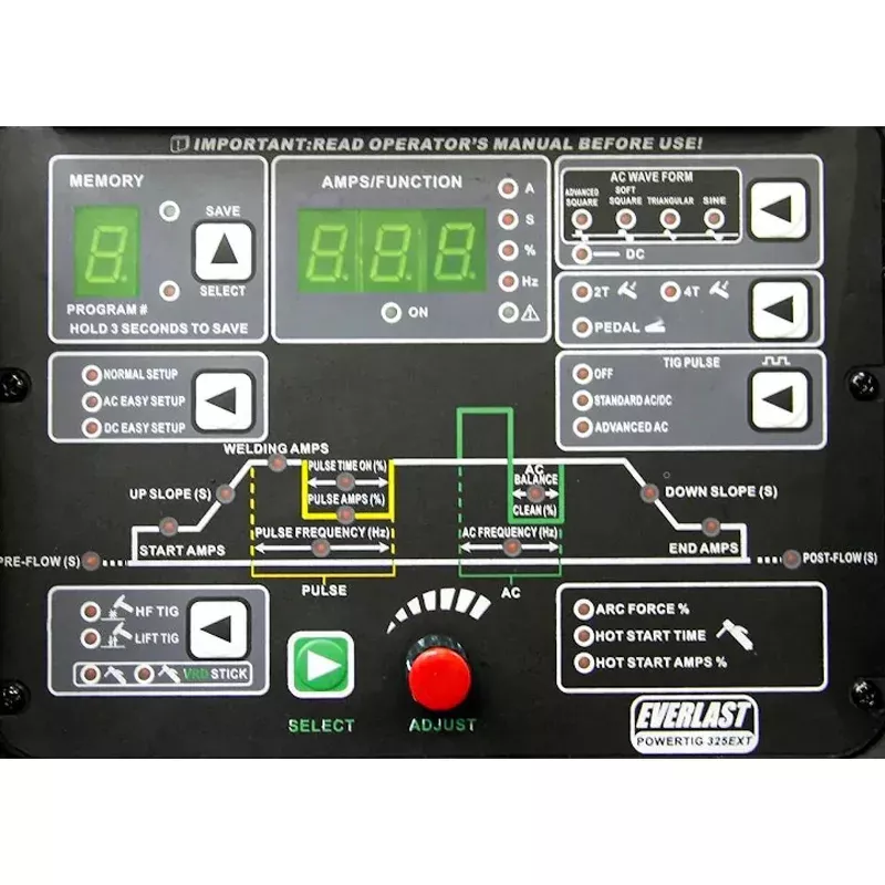 Инверторный источник EVERLAST PowerTig 325EXT -это высокопроизводительный сварочный аппарат TIG AC / DC и MMA с запасом мощности для большинства нагрузок.