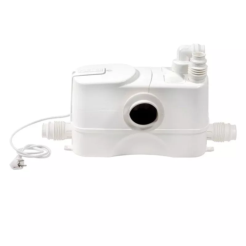 Производительный и надежный насос, измельчитель с лезвиями из никелированной нержавеющей стали значительно продлевают срок службы станции и не требуют ежедневного технического обслуживания. Простое техобслуживание в случае засорения или блокировки электродвигателя с возможностью демонтажа насосного блока путем откручивания двух винтов, уникальный сливной клапан, обеспечивающий чистоту и отсутствие проблем при техобслуживании. Обратный клапан встроен в боковые нижние впускные патрубки. Может отводить стоки от унитаза и 3 дополнительных источников (например, умывальника, душевой кабины и биде). Можно не задействовать все три входа, а только один или два из них.