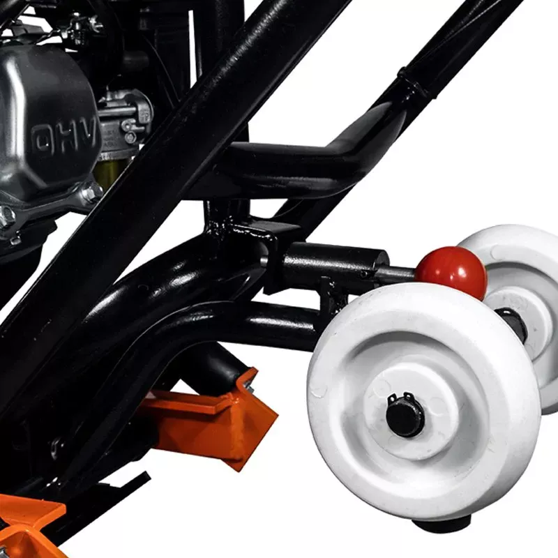 Виброузел с приводом от бензинового ДВС передаёт ударный и вращательный момент на основание плиты, воздействующей своим весом на рабочую поверхность.