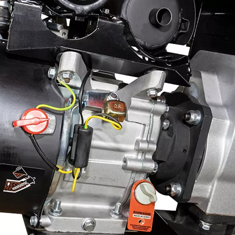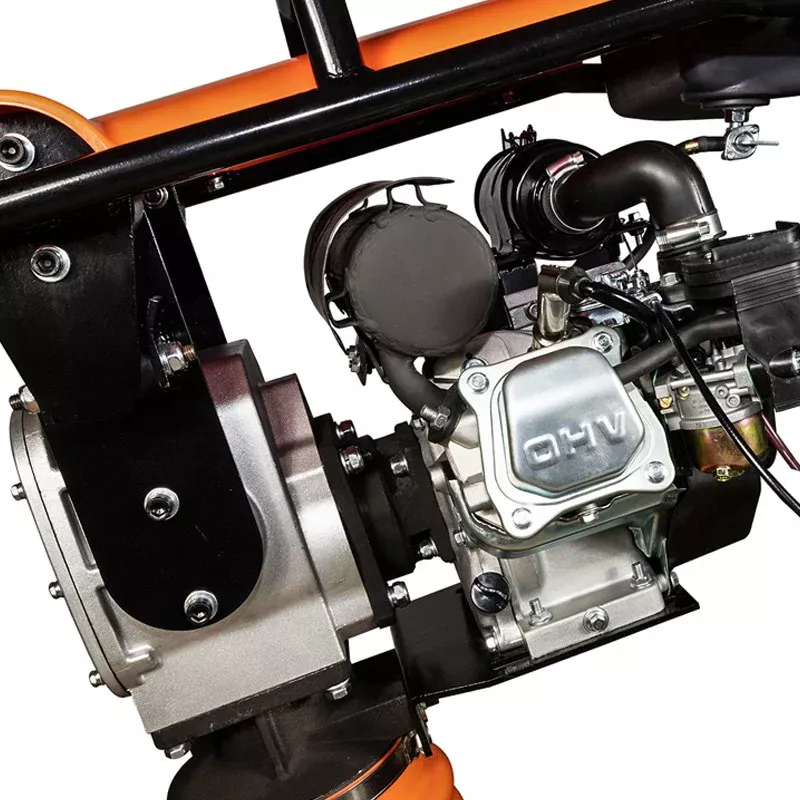 Виброузел с приводом от бензинового ДВС передаёт ударный момент на основание плиты, воздействующей своим весом на рабочую поверхность.