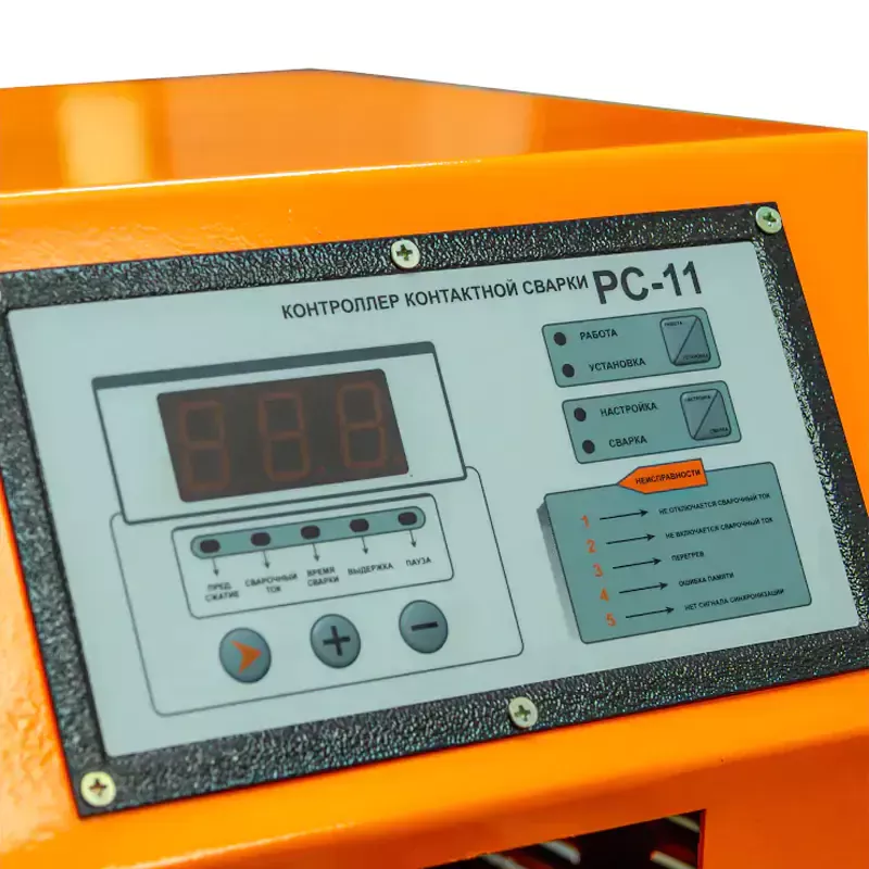 Контроллер позволяет бесступенчато регулировать: сварочный ток, время сварки, время спада тока. Пневмопривод позволяет быстро и без особых усилий производить сварку изделий.