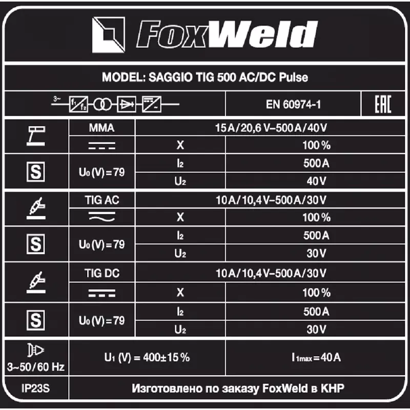 FoxWeld SAGGIO TIG 500 AC/DC Pulse аппарат аргонодуговой сварки 7588