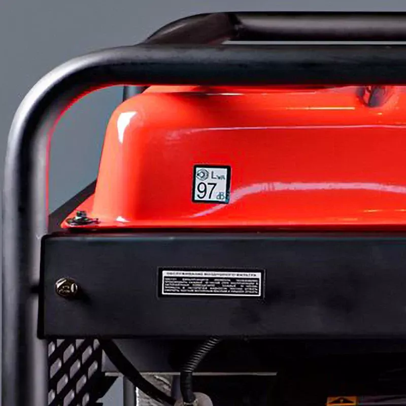 Бензиновый электрогенератор открытого типа позволит с легкостью добираться до внутренних узлов для их ремонта или обслуживания. В качестве защиты от тряски и ударов используется прочная металлическая рама, которая представляет собой трубу толщиной 32 мм.