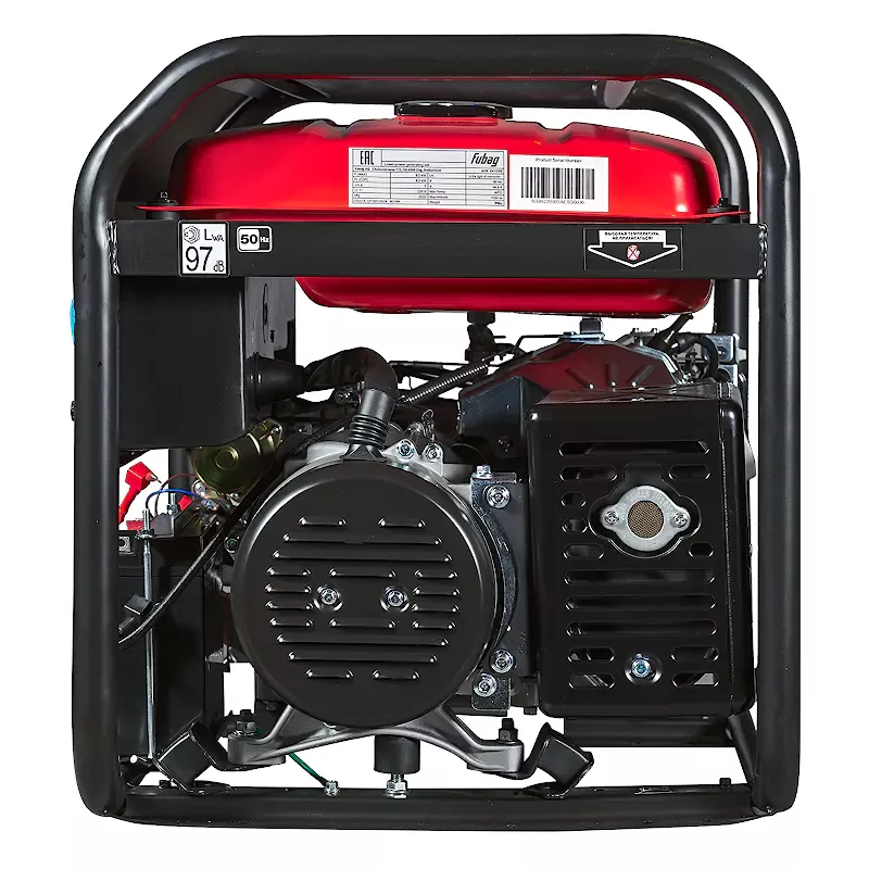 Автоматический предохранитель срабатывает в случае короткого замыкания или перегрузки, прекращая выработку тока. Индикатор на крышке топливного бака предупреждает о необходимости своевременной заправки генератора FUBAG BS 8000 DA ES.