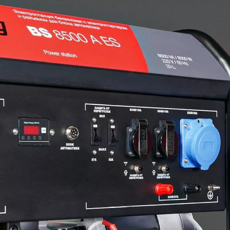 В бензогенераторе Fubag BS 8500 A ES есть система защиты, которая бережет оборудование от поломки. Она срабатывает в случае скачков нагрузки, при риске замыкания, а также если в бачке недостаточное количество масла. Для предотвращения поломки оборудование будет автоматически отключено.