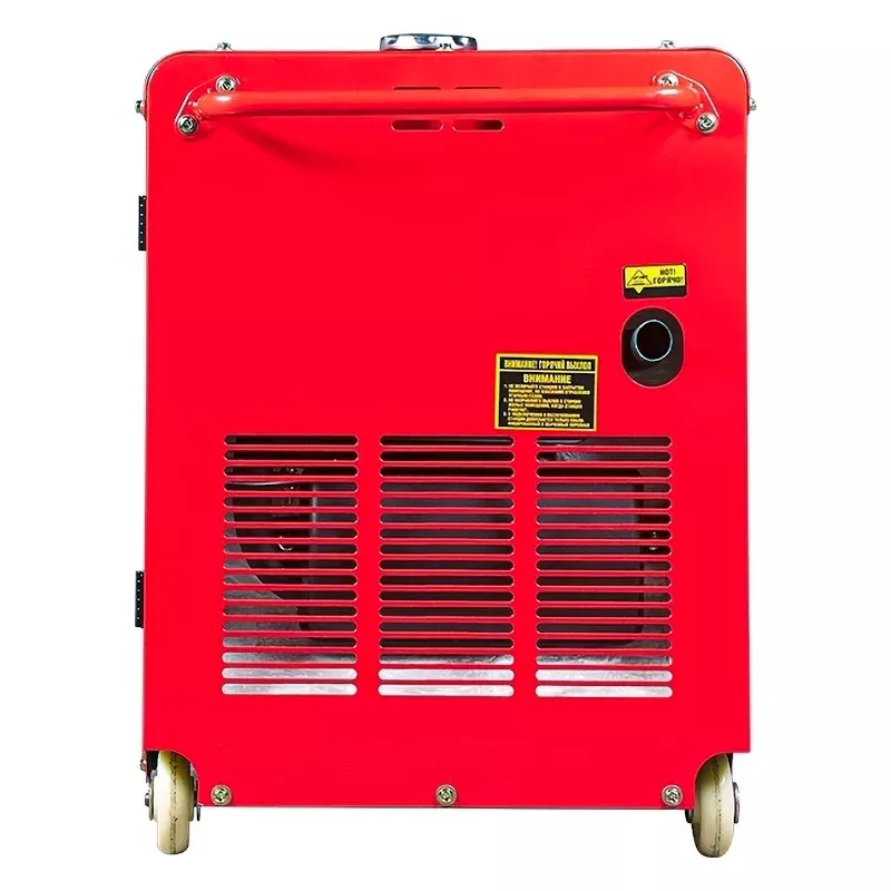 Все основные элементы генератора располагаются на прочной металлической раме. Жесткое закрепление позволяет поглотить часть вибраций и делает эксплуатацию изделия более комфортной даже при высокой нагрузке на двигатель.
