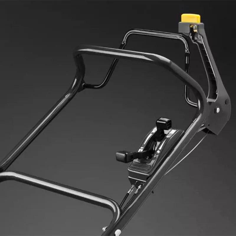 Выполняет функцию рукоятки для безопасной переноски газонокосилки, если возникает необходимость поднять ее над землей (например, для погрузки в автомобиль, перехода через высокий бордюр, и т.д.), чтобы не было необходимости браться руками за края режущей деки.