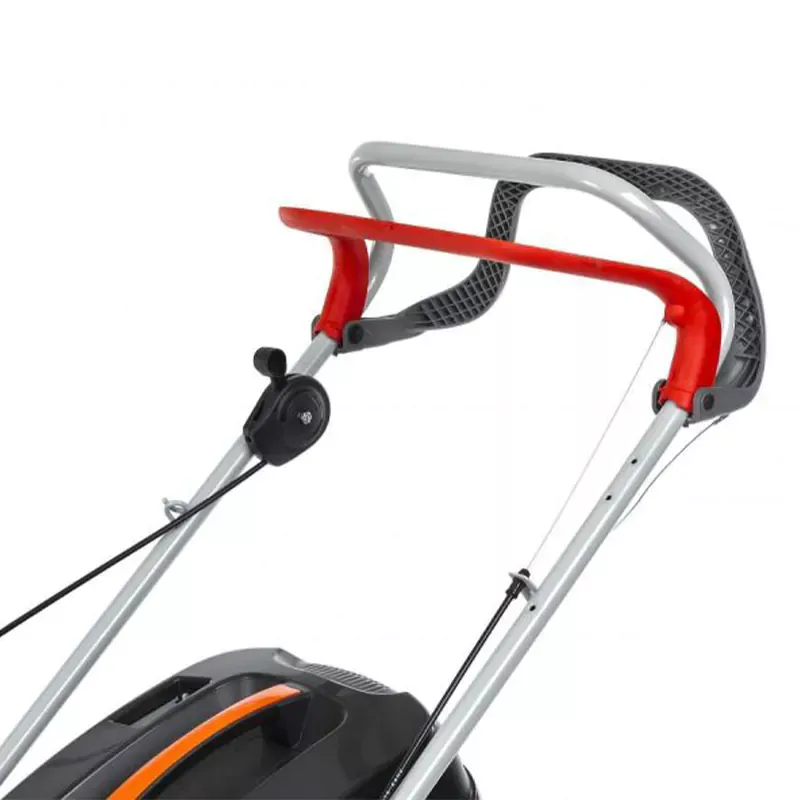 Высота стрижки настраивается вручную. Центральная регулировка действует сразу на все 4 колеса. Это позволит регулярно стричь траву на заданную высоту.
