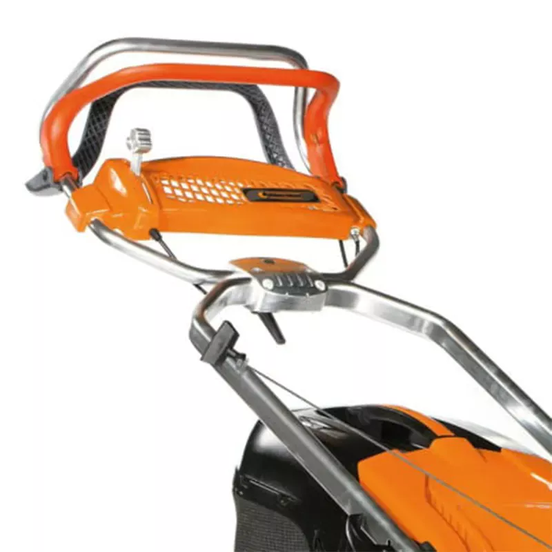 - Инновационная эргономичная рукоятка с центральным шарнирным соединением. Может быть отрегулирована по высоте быстро и без помощи инструментов, для удобства работы оператора любого роста. Удобные рычаги позволяют моментально полностью сложить рукоятку для компактного хранения. Все тросы управления спрятаны внутри рукоятки.