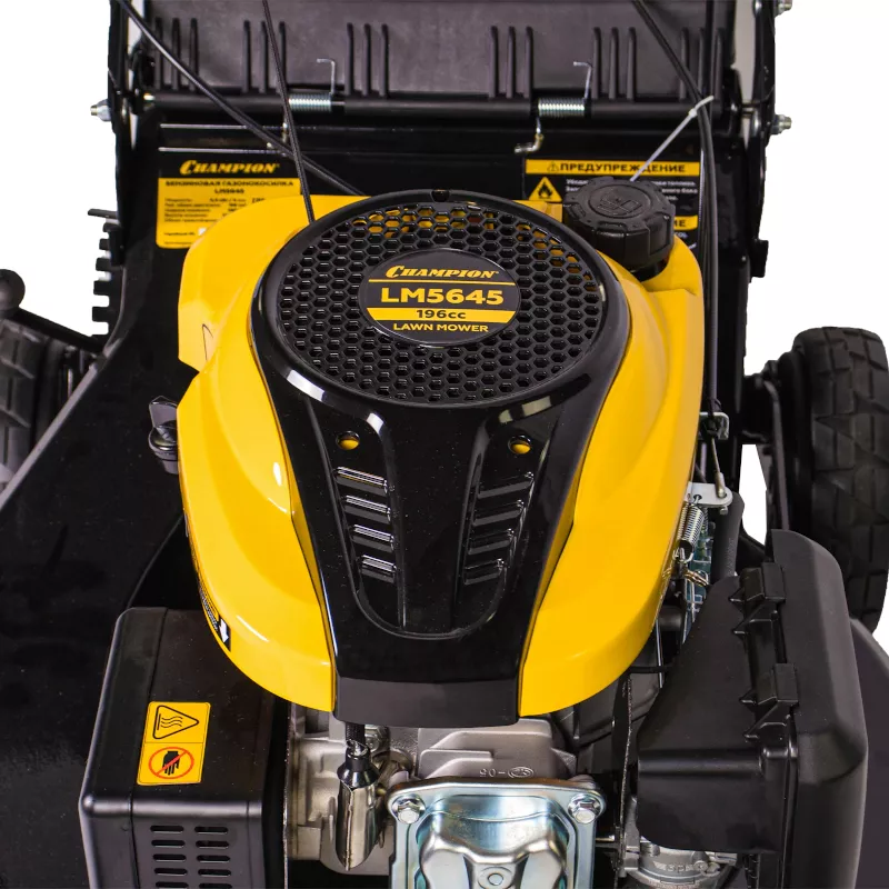 Бензиновая газонокосилка Champion LM5645 создана для обработки заросших растительностью дачных и приусадебных участков. Данная модель оснащена 4-тактным двигателем мощностью 6 л.с., который обеспечивает быстрое скашивание даже жесткой травы.