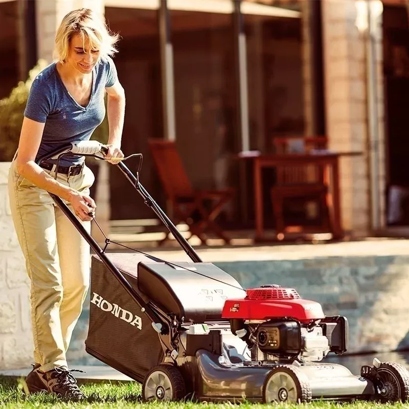 При необходимости емкость отсоединяется от корпуса, чтобы срезанная зелень выбрасывалась на землю. Кроме того, травокосилка способна перемалывать траву в органическое удобрение с помощью технологии Honda Versamow. Мульча поступает или в травосборник, или сразу выбрасывается на газон.