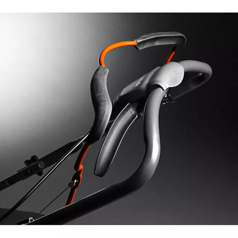 В косилке от Хускварны все максимально продумано для комфорта пользователя: функциональность, простое управление, эргономичная конструкция. Мягкая складная рукоятка быстро переключается между тремя положениями, среди которых каждый найдет удобное под свой рост. Для хранения и транспортировки она легко складывается, экономя место в пространстве.