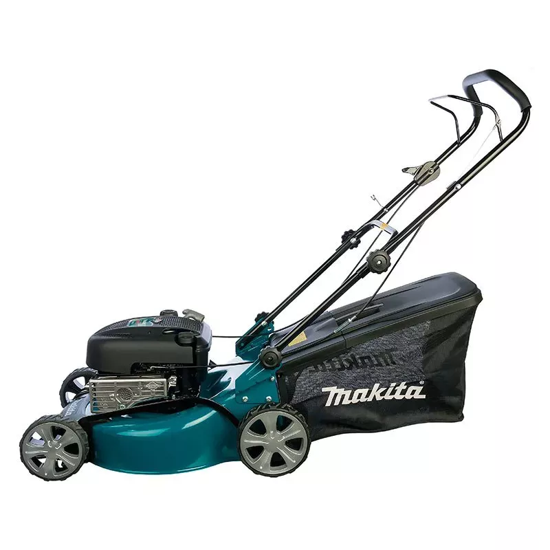Работает газонокосилка Makita PLM4620N от американского четырехтактного мотора мощностью 2,4 кВт. Встроенная система Magnetron обеспечивает стабильное бесконтактное зажигание даже холодного генератора. Автоматический акселератор газа регулирует число оборотов, тем самым распределяя расход топлива.