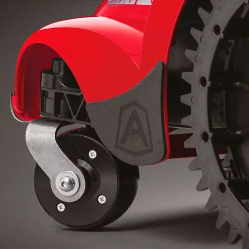 Передние колеса перемещаются независимо друг от друга, поэтому робот способен стричь траву на неровной поверхности, поддерживая при этом высокую производительность.