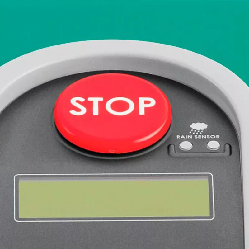 Модель оснащена сенсором, который в случае дождя дает газонокосилке команду прекратить кошение и вернуться на зарядную станцию на какое-то время. Датчик можно отключить и дать возможность машине работать в дождь (это делать не рекомендуется в связи с возможностью последующего образования проплешин на газоне).