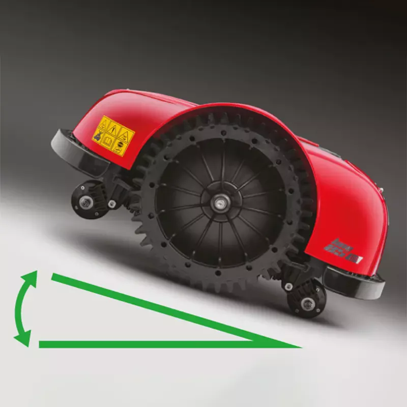 Робот осуществляет стрижку газона как при движении вперед, так и при движении задним ходом. Это существенно увеличивает эффективность кошения, т.к. роботу не нужно разворачиваться при контакте с препятствиями и кабелем периметра.
