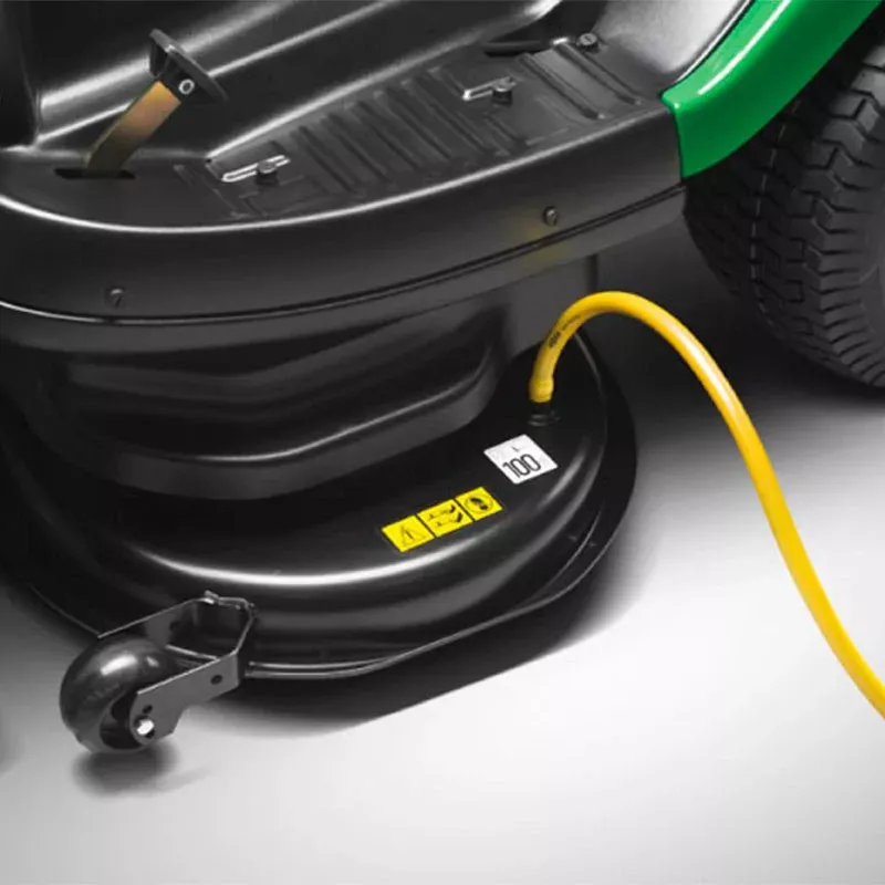 Если оператор встает с сидения, то двигатель и дека моментально останавливаются в целях безопасности.