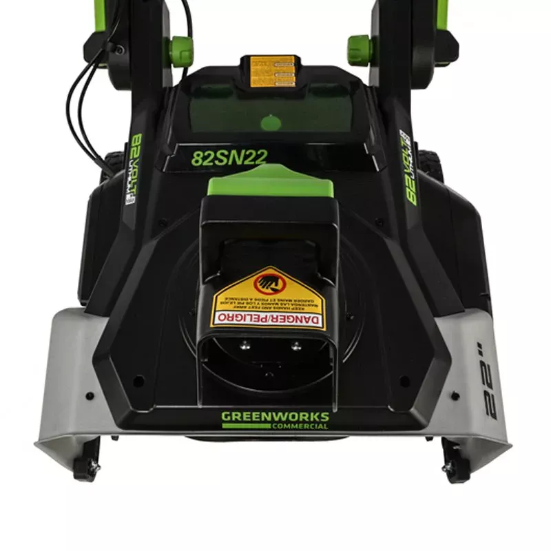 Аккумуляторный снегоуборщик GreenWorks GD82 работает от любой батареи на 82 В из серии GL, которая вместе с зарядным устройством покупаются отдельно. Если вы уже используете технику этой линейки, то вам не придется переплачивать за модуль питания, так как он совместим с другими устройствами GreenWorks.