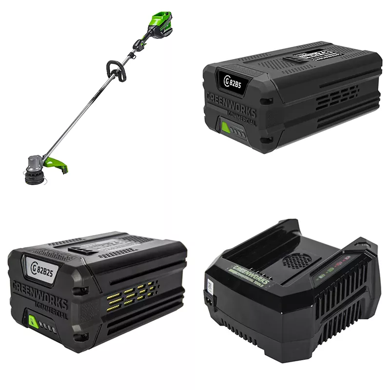 Greenworks GD82LT триммер аккумуляторный с АКБ G82B5 и G82B2 + ЗУ G82C в комплекте