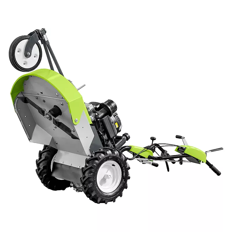- Переднее поворотное колесо обеспечивает превосходное управление косилкой.