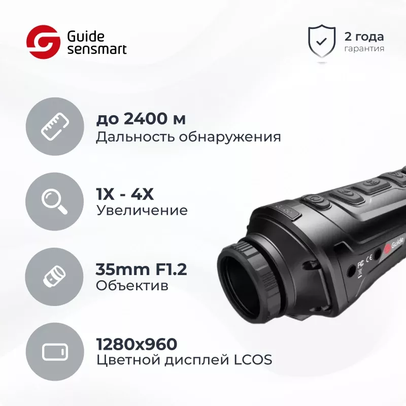 Портативный тепловизионный монокуляр Guide TK431 (2,3x, F35mm) с матрицей 400x300@17мкм можно использовать для наблюдений в городе и на природе, во время походов и путешествий, на охоте или рыбалке, для самозащиты, ночного патрулирования и поисково-спасательных мероприятий.