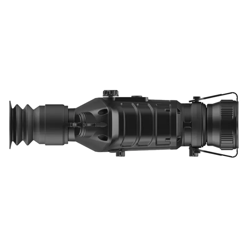 Тепловизионный прицел Guide оснащен объективом диаметром 50 мм, который обеспечивает светлую яркую картинку. Передняя линза сделана из германия. Этот материал отличается высокой восприимчивостью инфракрасного излучения для качественного изображения. Для распознавания целей на расстоянии предусмотрены цифровое увеличение от 1 до 4х, а также масштабирование до 3,3 крат. Изображение выводится на морозоустойчивый микродисплей AMOLED с разрешением 1024х768 пикс. и реалистичной передачей цветов. За счет большой частоты кадров 50 Гц изображение остается плавным даже при наблюдении за движущейся целью.