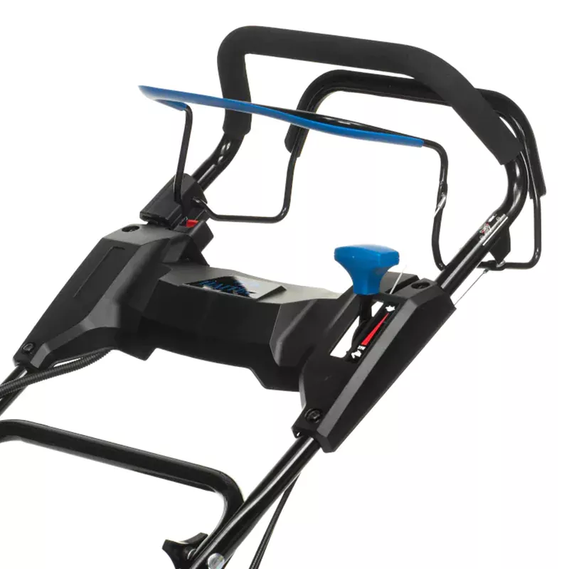 За счет привода на задние колеса косилка движется сама, оператору не приходится прикладывать для этого усилия. На участках со сложным рельефом и ландшафтным дизайном привод можно отключить, чтобы облегчить маневрирование.