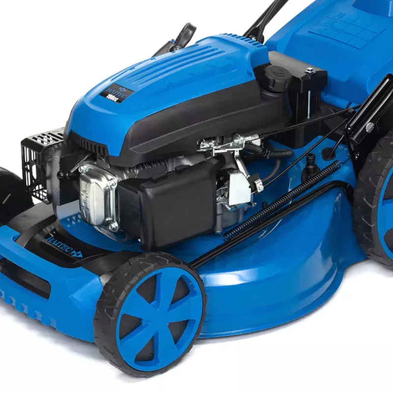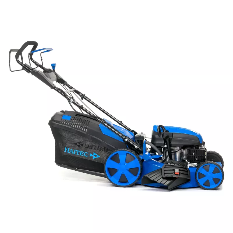 Бензиновая газонокосилка HAITEC оснащена 4-тактным мотором мощностью 6,5 л.с. Ширина скашивания 53 см позволяет обработать обширный участок за небольшое число проходов. Быстрому и легкому запуску двигателя способствует наличие электрического стартера.