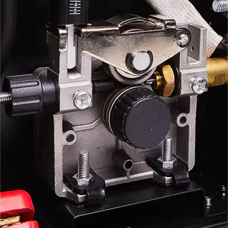Информативное табло с отображением силы тока и напряжения, а также регуляторы скорости протяжки проволоки, напряжения и индуктивности позволяют легко отрегулировать сварочный аппарат для любого вида работы.