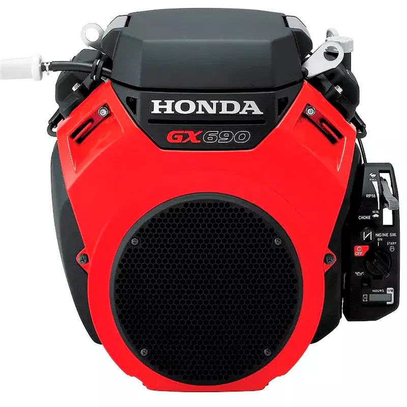Двигатель бензиновый Honda GX690RH-BXF5 разработан специально для использования совместно с мототехникой. Благодаря специальной конструкции имеет низкий уровень шума и вредных выбросов в атмосферу. Кованый коленчатый вал изготовлен с высокой точностью, что обеспечивает отсутствие вибраций. Оснащен панелью управления, топливным насосом, датчиком уровня масла. Тип двигателя: бензиновый, 4-хтактный, двухцилиндровый, V-образное расположение цилиндров, с воздушным охлаждением и системой газораспределения OHV, без бака и глушителя.
